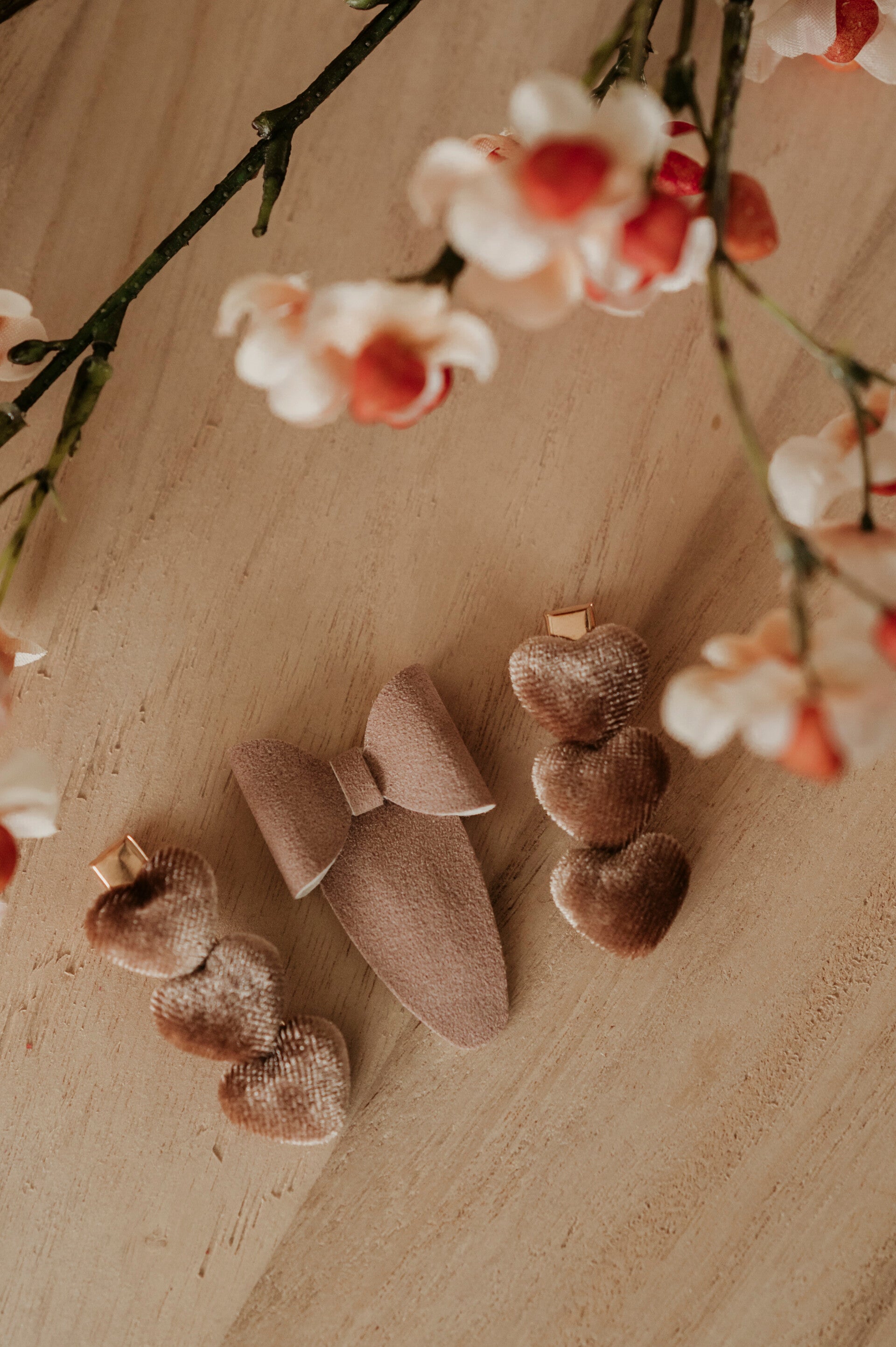 Deze schattige alligator haarspeldjes met velvet glanzende bruine hartjes zijn een echte eyecatcher in elk kapsel. Dankzij de zachte velvet afwerking hebben de hartjes een luxe uitstraling met een subtiele glans. Perfect voor zowel dagelijks gebruik als speciale momenten.