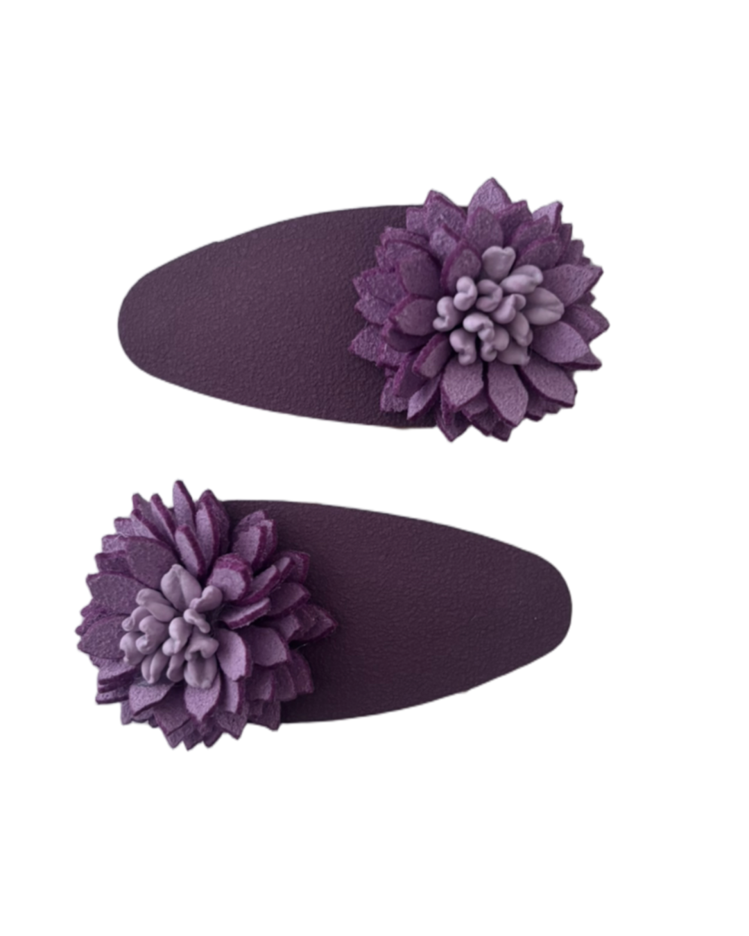 Deze 4 cm klikklak haarspeldjes zijn een prachtige aanvulling op elk kinderkapsel. De speldjes zijn voorzien van een mooie paarse bloem, die zorgt voor een speels en elegant detail. Perfect om een outfit nét dat beetje extra te geven.