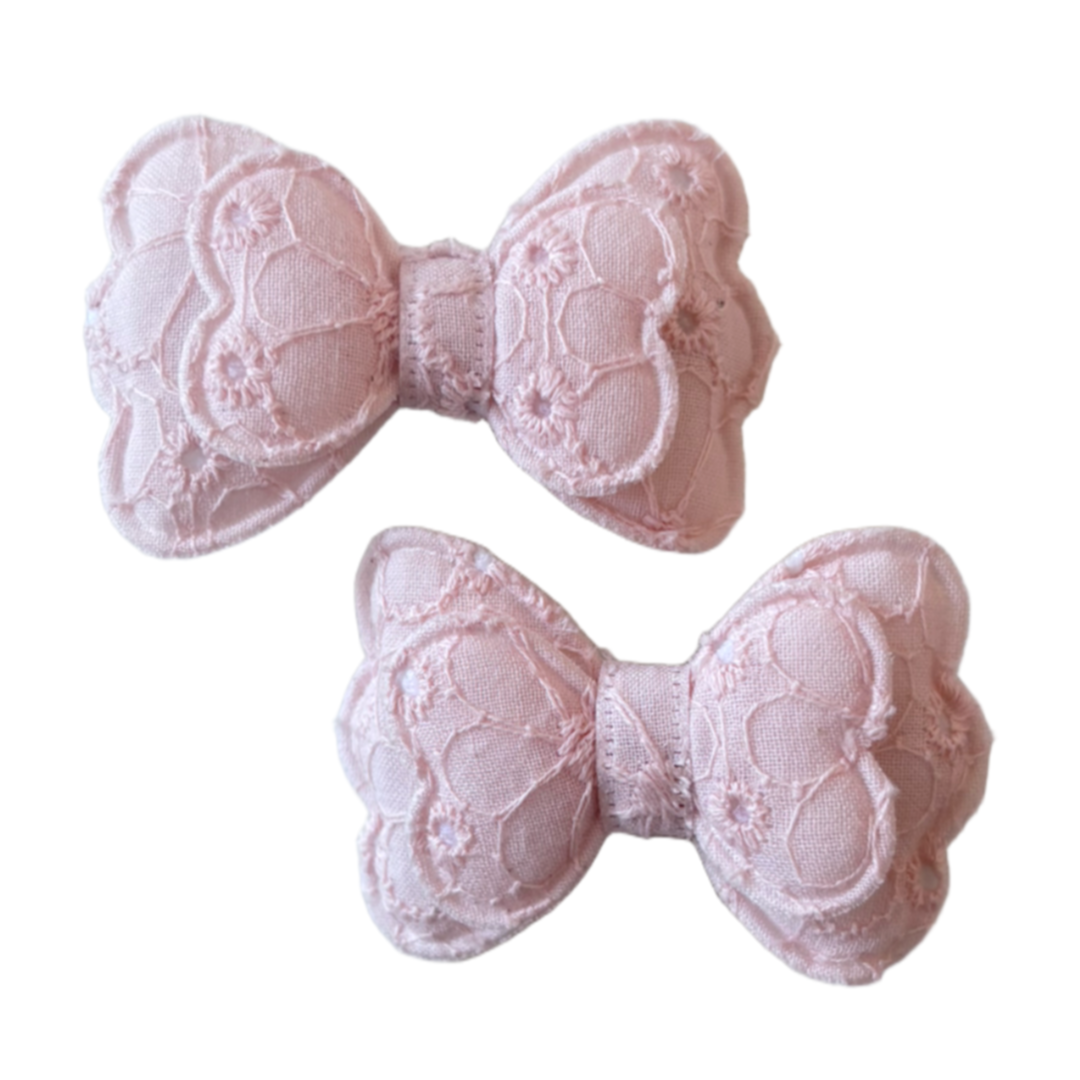 Een lief lichtroze vlinderstrikje met een subtiel randje kant. Zacht, speels en perfect voor elke dag. De strikjes worden geleverd per 2 en zitten op 4 cm alligator speldjes.