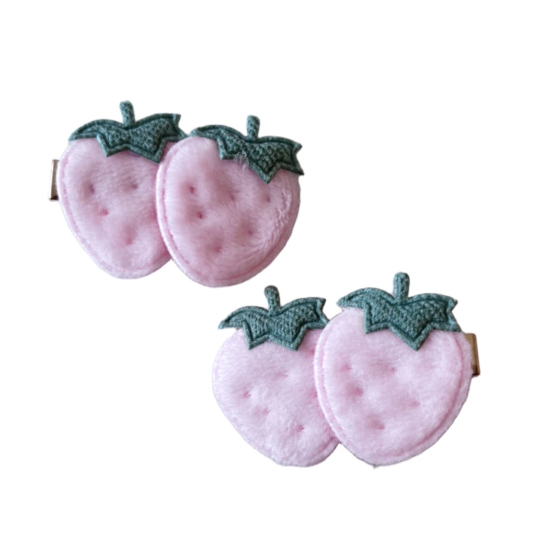 Fluffy aardbeien speldjes lichtroze (2 stuks)
