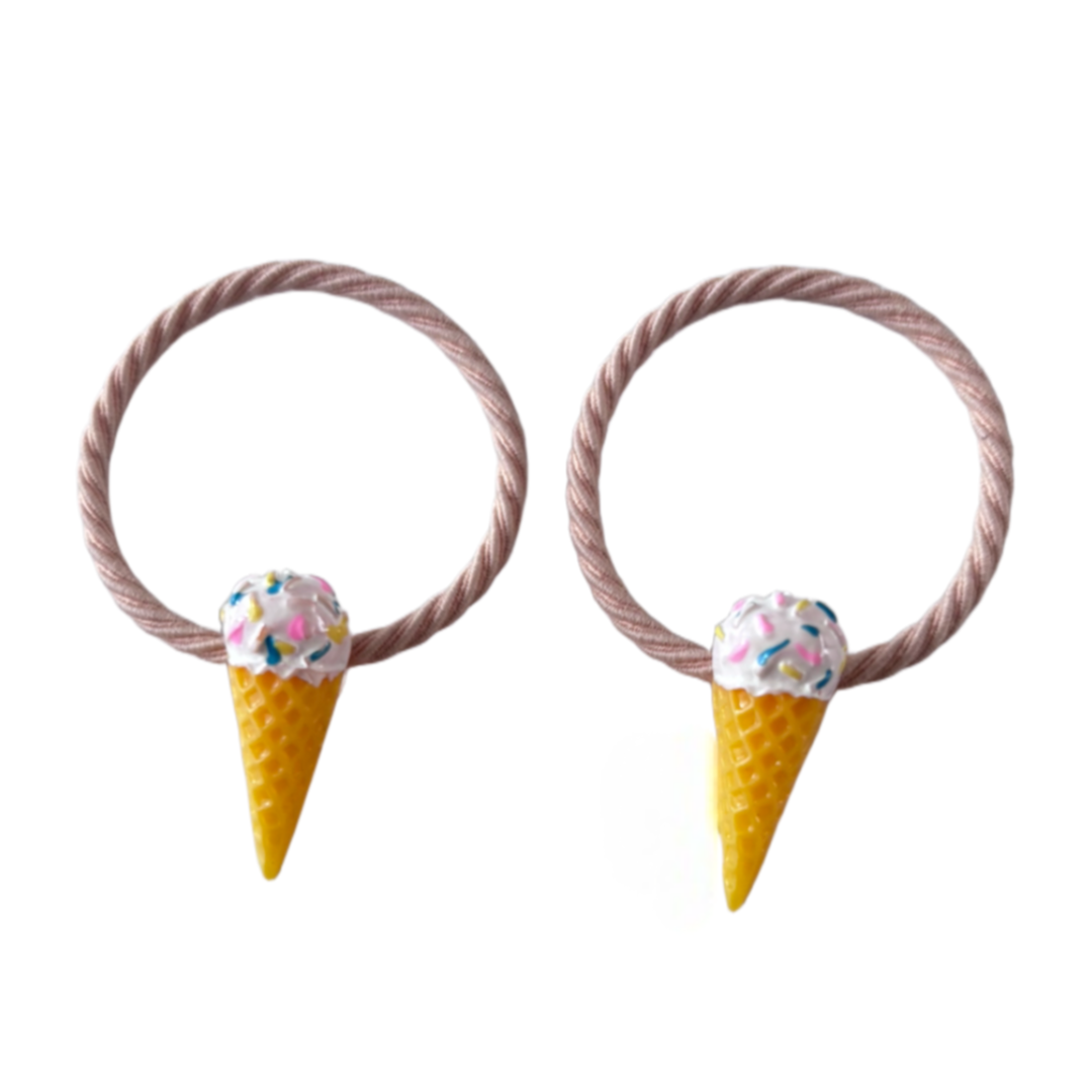 Geef je look een speels tintje met onze kleurrijke elastiekjes in de vorm van ijsjes. Met verschillende kleuren en designs is er altijd iets dat bij je past. Combineer ze, mix ze, en maak van elke dag een beetje feest!